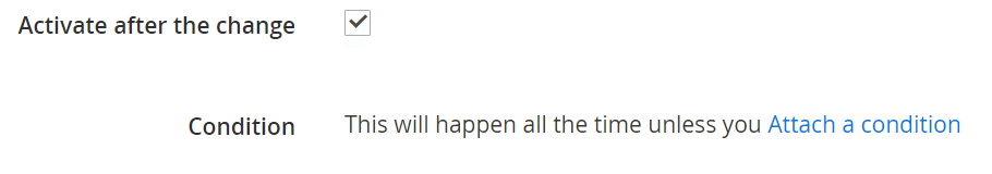 * Na janela popup, encontre a linha "Condition" e clique em "Attach a condition"
