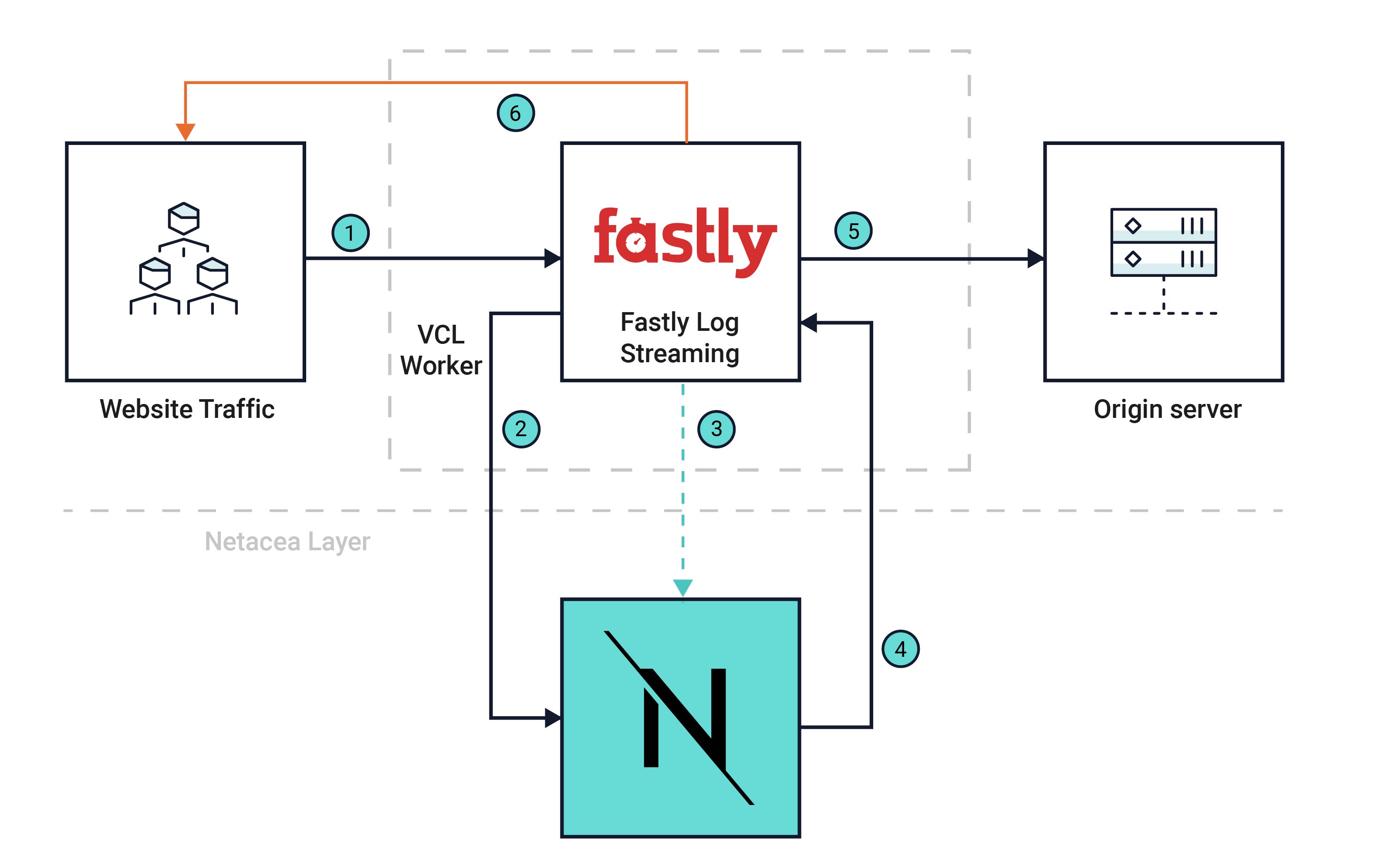 Kun kävijä saapuu ensimmäistä kertaa Netacean/Fastlyn suojaamalle sivustolle, laajennus tekee kyselyn Netacea Protector API -palveluun. Jos kävijä tunnetaan haitalliseksi, laajennus suorittaa asianmukaisen torjuntatoimenpiteen.