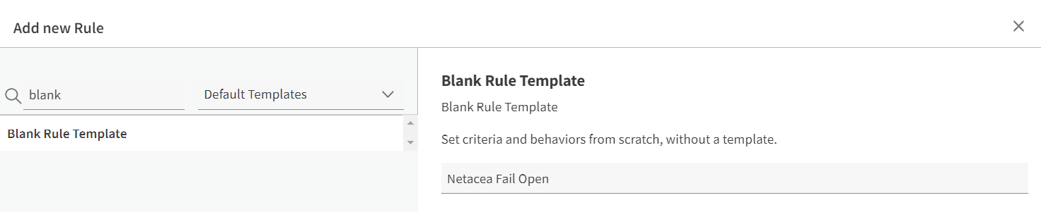 ### **Nouvelle règle (modèle de règle vide) : Netacea Fail Open**