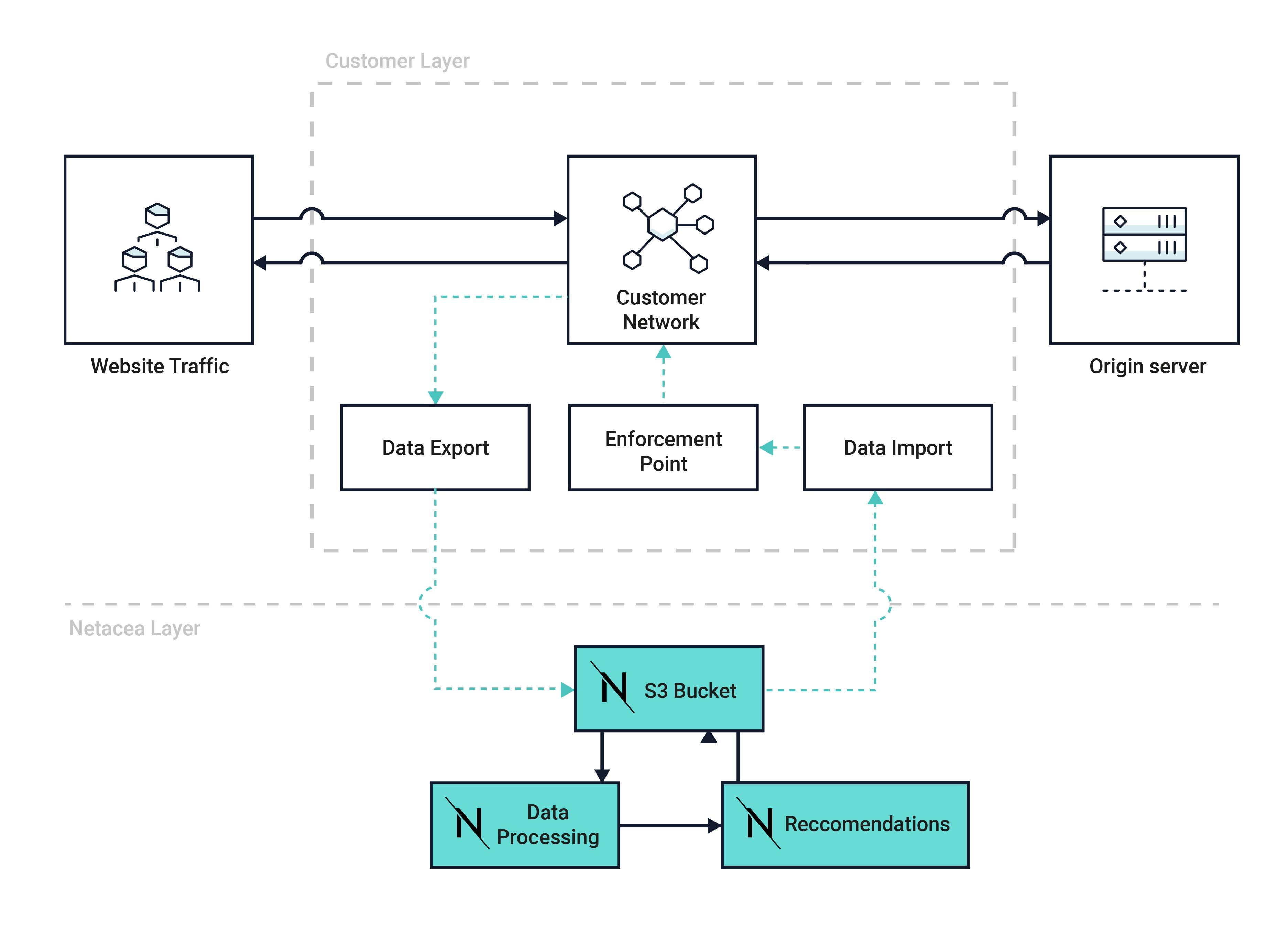 Netacea fournit un N/ DETECTION FEED de toutes les menaces actuelles au client afin qu'il l'utilise comme base pour prendre des mesures contre les visiteurs à l'aide des systèmes existants​