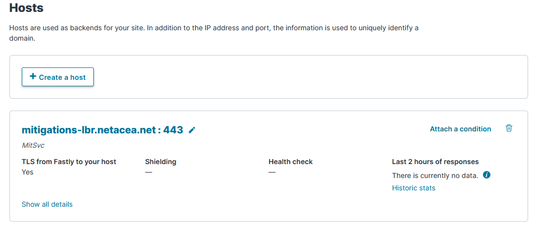 Per consentire al VCL Netacea di effettuare chiamate alla Protector API, è necessario configurare 2 nuovi host con i dettagli di Netacea, da richiamare negli [snippet VCL](#vcl-snippets).