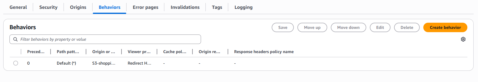 CloudFrontアプリケーション内で、Lambdaを使用するディストリビューションを選択します。次に「Behaviors」を選択してください。