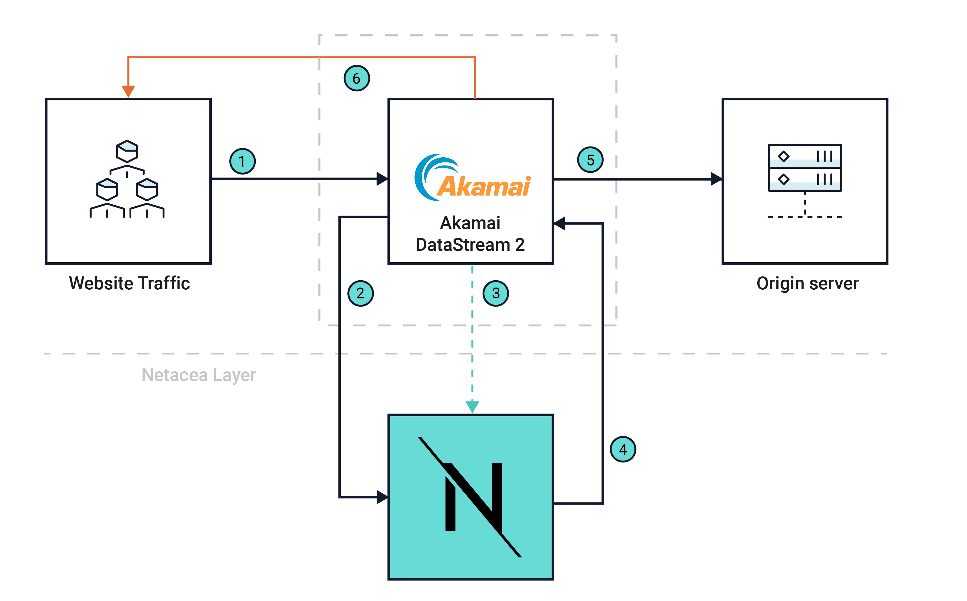 Netacea utilizes Akamai EdgeWorkers to perform protection actions, along with Akamai DataStream 2 to stream log data for further analysis.