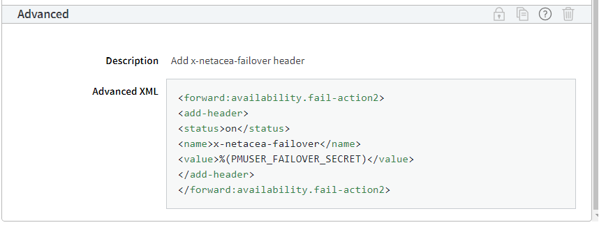 {% hint style="info" %} <mark style="color:red;">\*</mark>Failover Advanced Behavior is niet beschikbaar totdat [Netacea Fail Open XML](https://docs.netacea.com/nl/netacea-plugin-informatie/monitoring-configuration/installation-and-configuration/..#configuring-netacea-fail-open-xml) is toegevoegd.