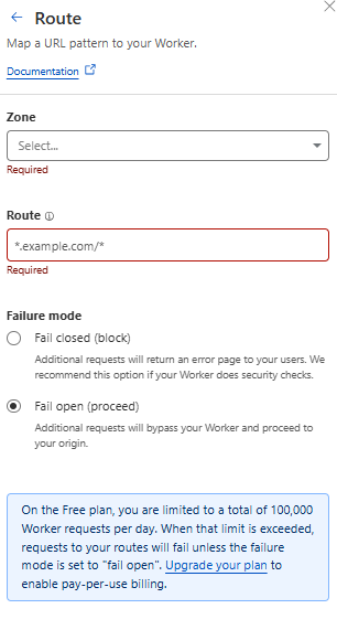 ***Uwaga:** Jeśli napotykasz problemy z **Workerami*** ***niewyzwalającymi się** na określonej trasie, upewnij się, że ustawienia DNS dla tej trasy (rekord DNS) mają **Proxy Status** (znany również jako orange-clouding)* *ustawiony na „**Proxied**" (włączony).*